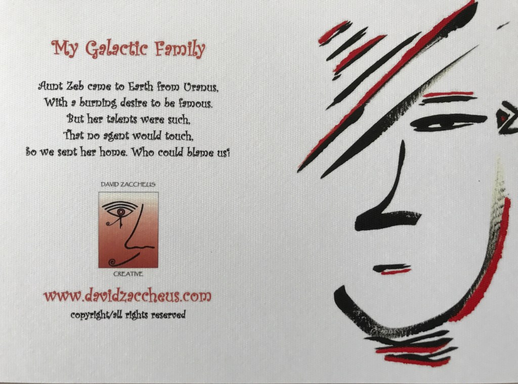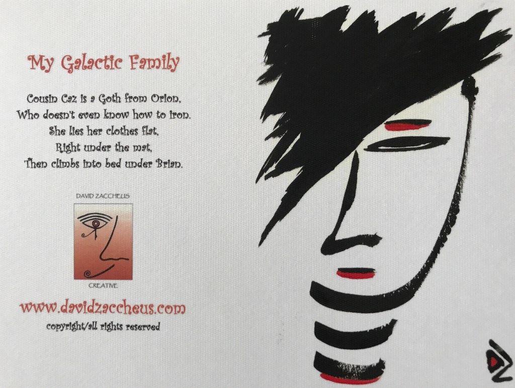 David Zaccheus offers a solution to this perplexing question through two ranges of humorous greeting cards, using his flair for simple lines and bold graphics, and incorporating delightful poetry in the form of the limerick.
