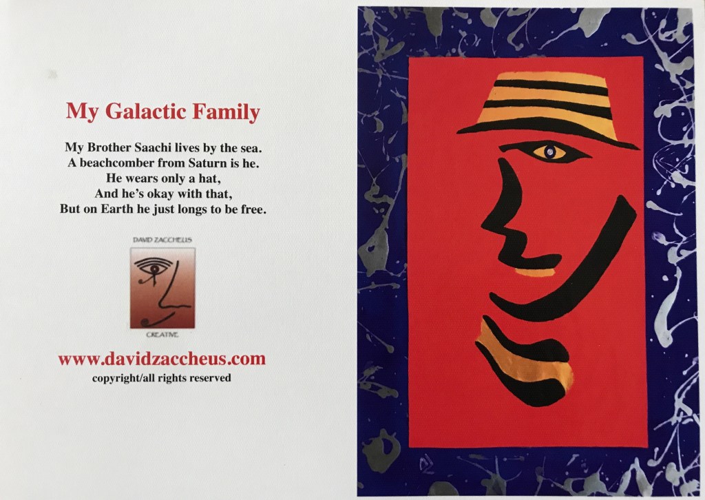 Cards come with silver coloured envelopes (approx 160mm x 230mm), and are priced at AUD$9.00 each. Minimum order is ANY eight cards from Cosmic Range (with envelopes) for AUD $72.00 including free delivery within Australia. Printing is on front and reverse. Inside is blank.